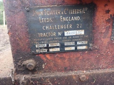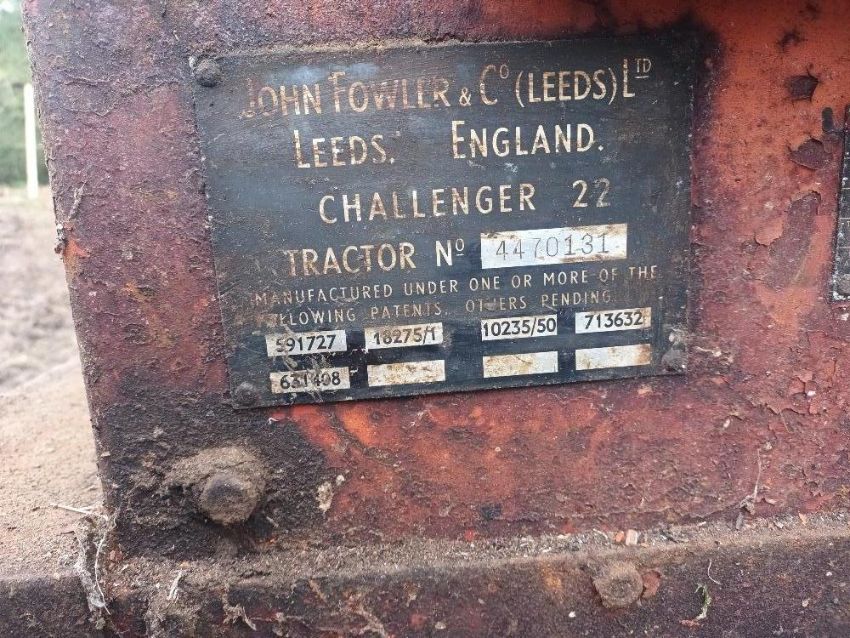 Fowler Challenger Crawler 22 , Chassis No. 447.031, Reg 810 LNO, Reg date 01/08/58, Original registration document. Note: towed into position. Engine races when started. We believe the Rack is stuck. With original seat, batteries and grill.