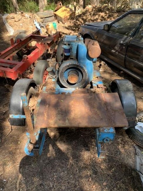 Lister engine turns by hand on trailed base, 1.8m long, 1.5m wide. Stored near Thetford, Norfolk. No VAT on this item.