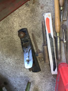 Box of carpentry tools. Stored near Gorleston, Norfolk. No VAT on this item.