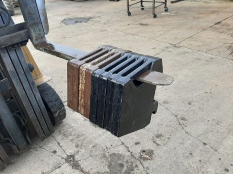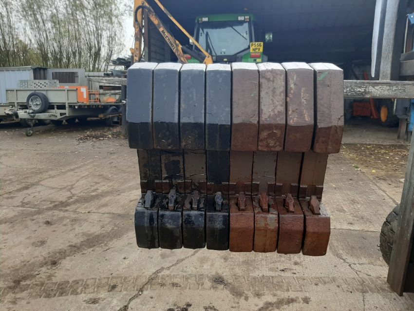 8 Massey weights 45 kgs each. Stored near Eye, Suffolk.