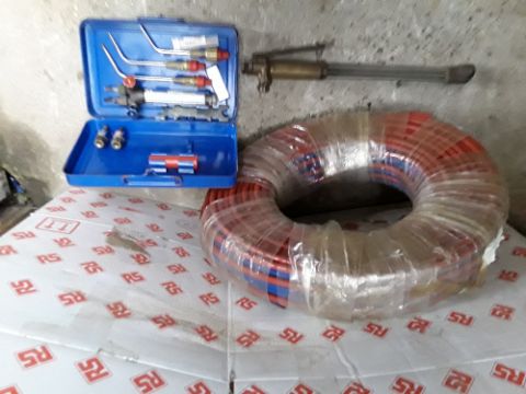 Oxygen/Acetylene cutting gear/ welding full reel of hoses. Stored near Belton, Norfolk. No VAT on this item.