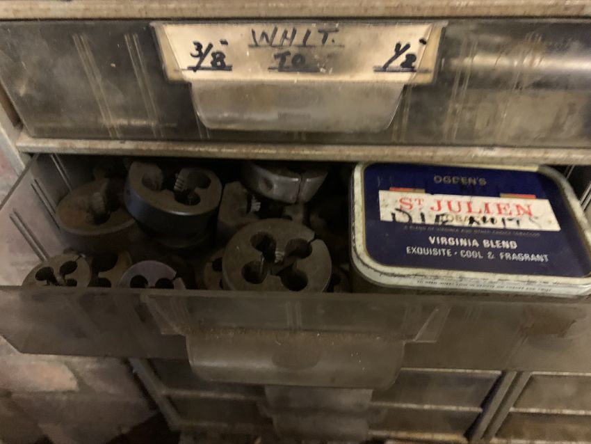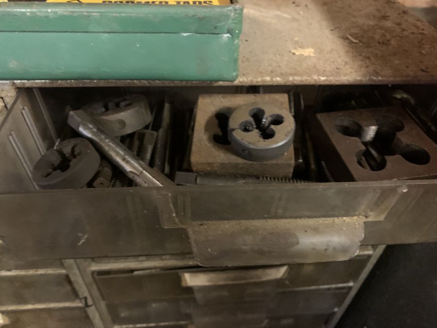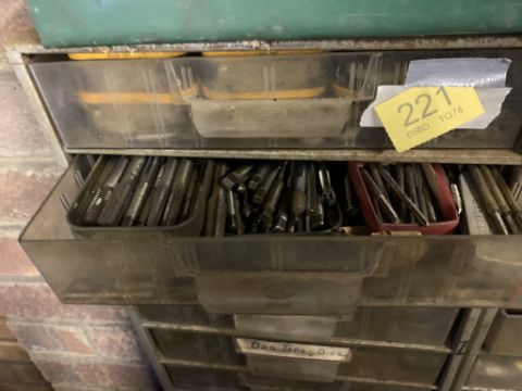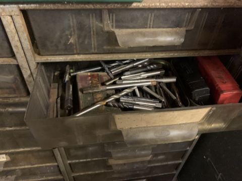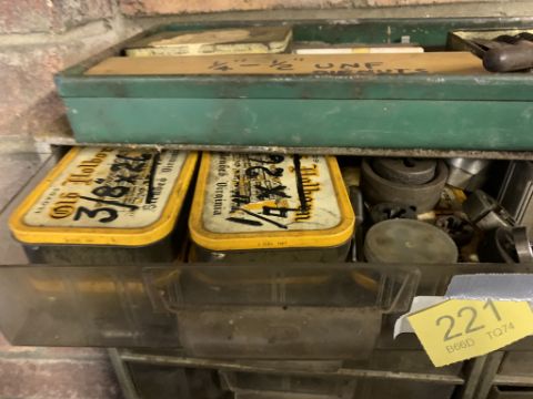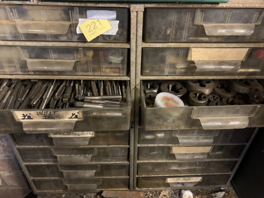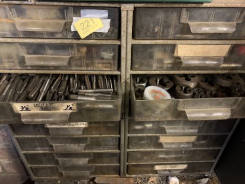 Set of plastic drawers with taps and dies. Stored near Gorleston, Norfolk. No VAT on this lot.