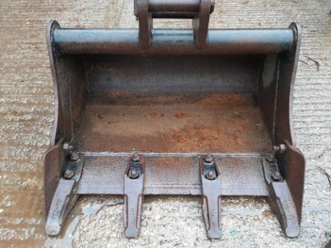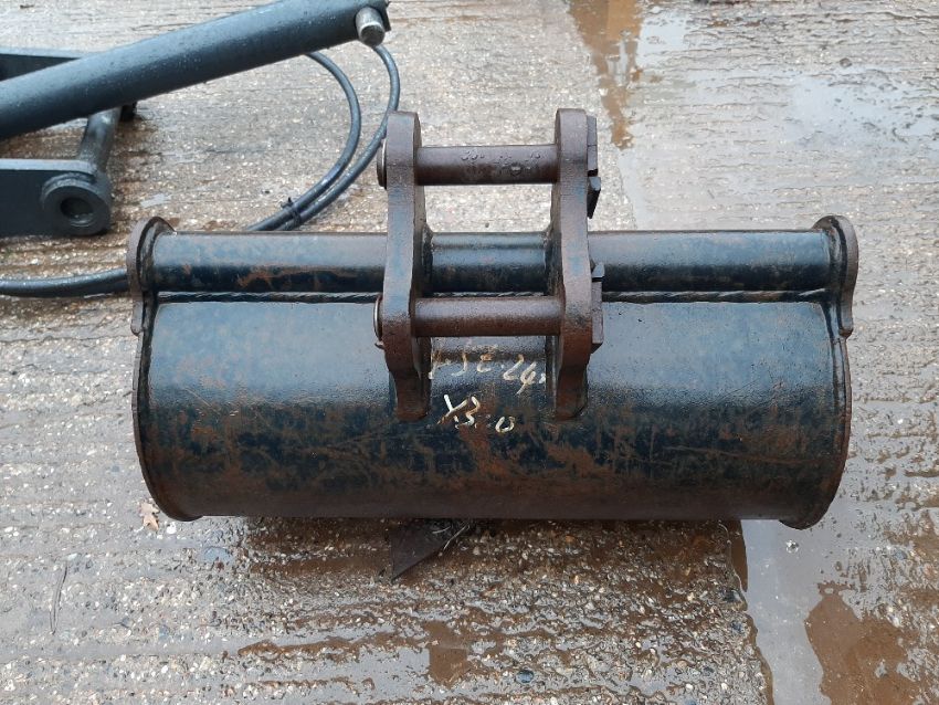Second hand 600 mm digger bucket with 30 mm pins and 125 mm pin centres. Stored near Eye, Suffolk.