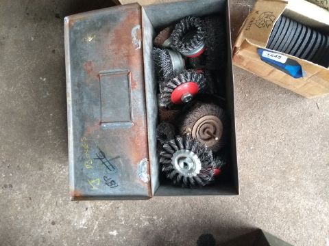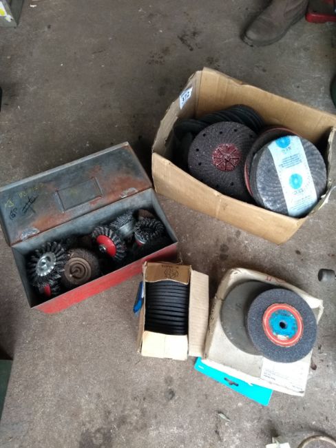 Quantity of Disc grinding wheels and rotary wire brushes. Stored near Gorleston, Norfolk. No VAT on this item.