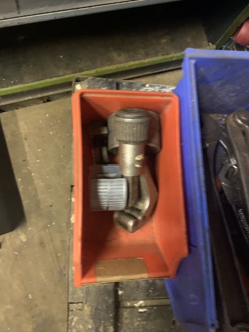 4 bins of pipecutters, adjustable spanners and pipe hole cutters. Stored near Gorleston, Norfolk. No VAT on this lot.