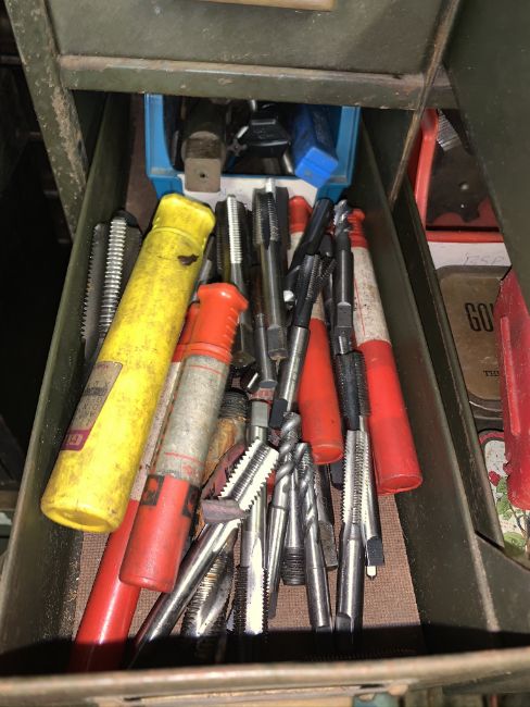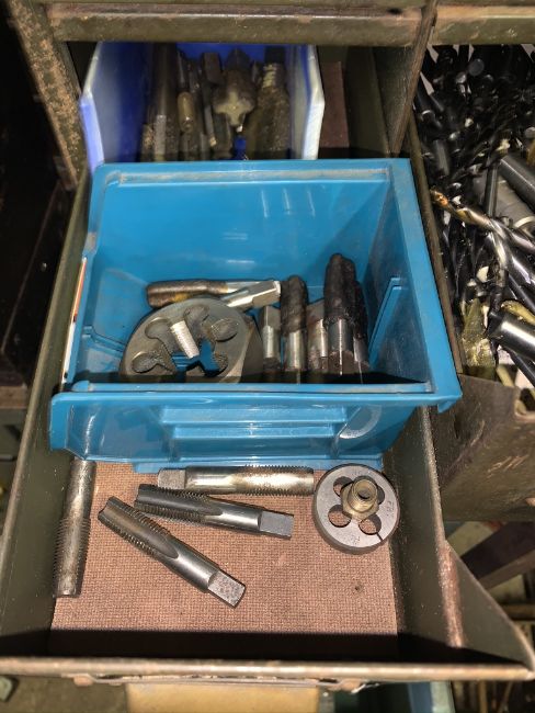 Set of drawers with tap and dies and drill bits. Stored near Gorleston, Norfolk. No VAT on this item.