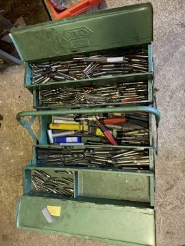 Tool Box of lathe tools, reamers etc. Stored near Gorleston, Norfolk. No VAT on this item.