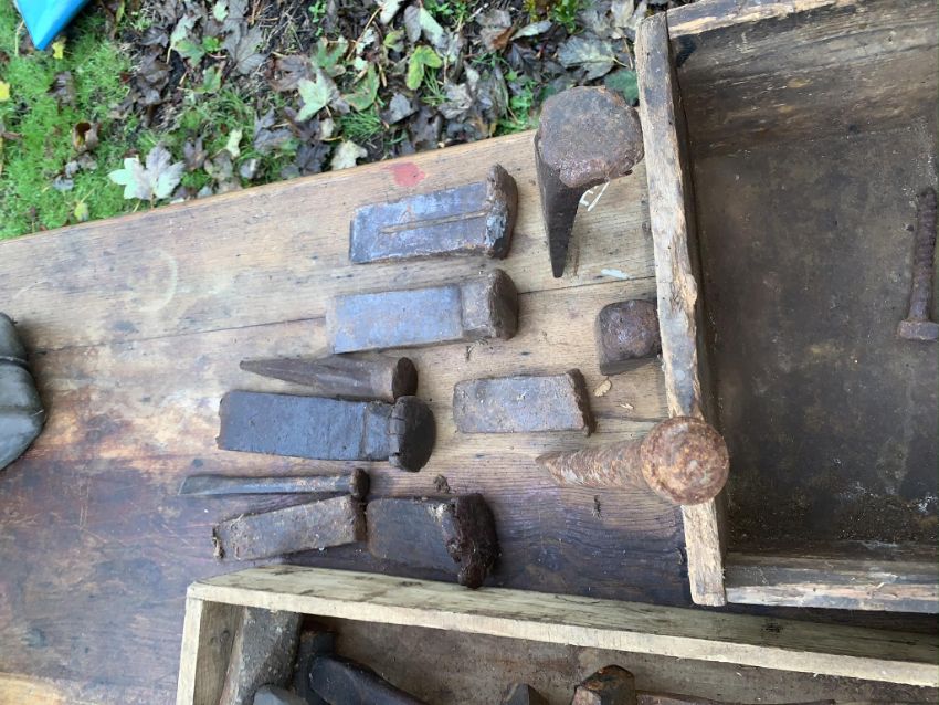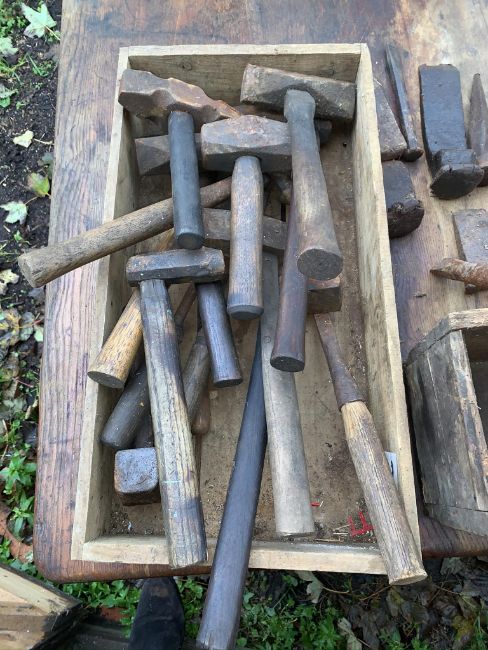 Blacksmith hammers and tools. Stored near Gorleston, Norfolk. No VAT on this lot.