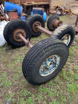 Ex Army Axles and tyres. Stored near Bungay, Suffolk.