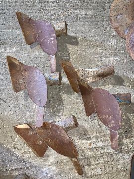 Assorted Plough Spares inc Turnover Ram, skimming board holders, etc. Stored near Chatteris, Cambridgeshire.