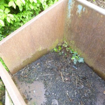 Tanko 5ft rear mounted transport box, as found, rusty with odd hole. Stored near Halesworth, Suffolk.