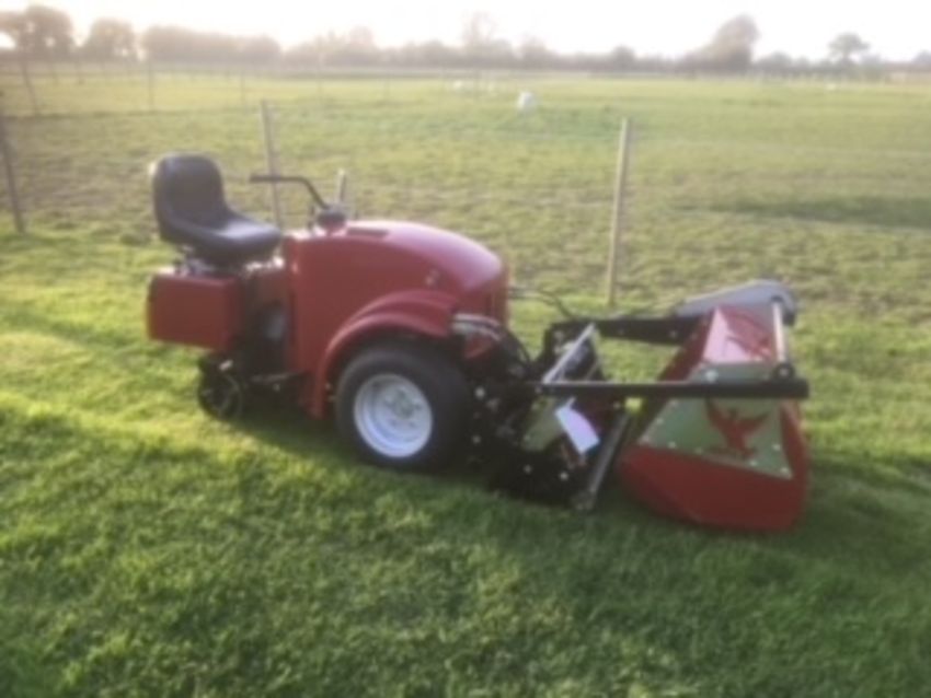 Moore Mower, ride on cylinder mower with hydraulic driven cylinder and high tip grass box, fitted with 16HP V Twin Briggs engine. Stored near Beccles, Suffolk. No VAT on this lot.