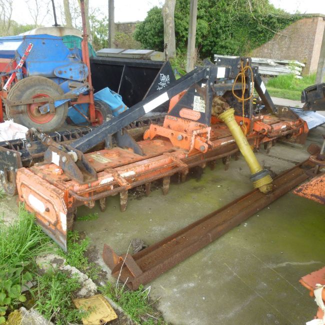 Maschio 3.5m power harrow complete with spare gear box and crumbler bar, as found, not used for some time. Stored near Bungay, Suffolk.