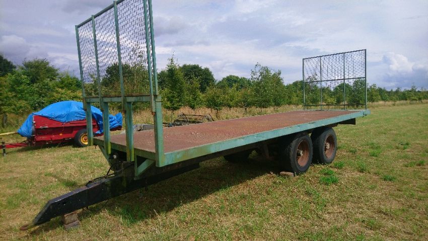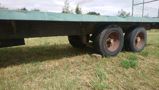 Flat bed trailer, 8m x 2.4m bed 1.3 off ground. Stored near Palgrave, Suffolk.