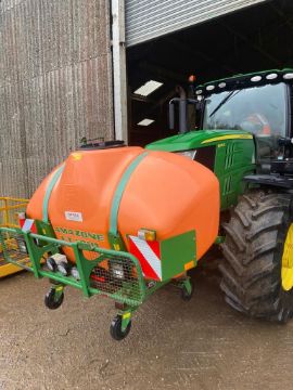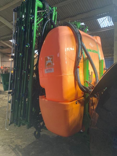 Amazon Mounted Sprayer UF1801, purchased in 2014, rear tank 1800l, front tank 1000l, wheel stands, 24m, re sealed diaphragm 2022, ISOBUS, front LED working lights, triple nozzle selector (Blue 0.3, Brown 0.5, 0.3 Hypro guardian air twin), blue boom lights (LED), 3 inch intake, tractor not included.