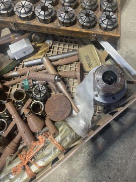Qty of Collets, spindles, lathe steady and chucks. Stored near Rushall, Diss. No VAT on this lot.