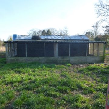 28ft x 8ft rearing shed, timber and felt roof in two compartments together with outdoor pens (buyer to dismantle)