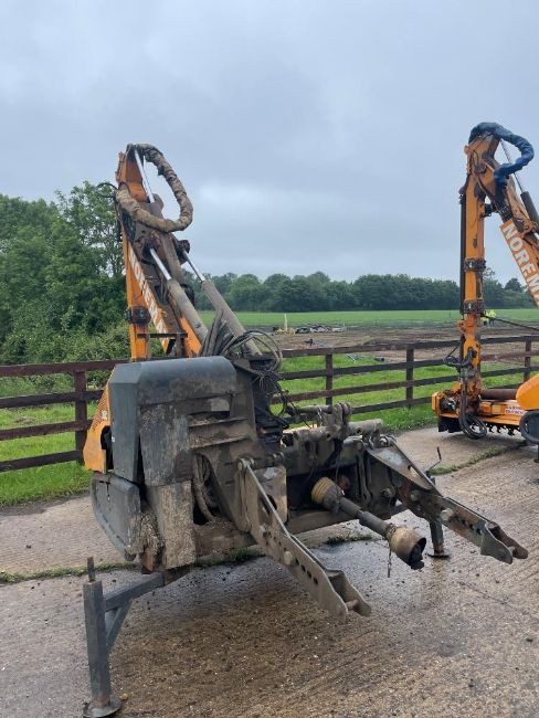 2003 Noremat Maxibra hedge cutter, 7.2m reach, joystick control, 1,100 hours, Ex council bracket mounted on McConnell brackets.