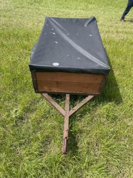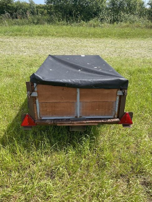 Car trailer 4 x 5ft, good condition with new tyres and wood, including cover. No VAT on this lot.