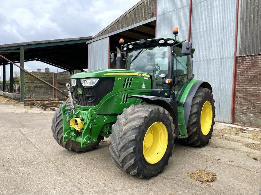2013 John Deere 6150R 4wd Tractor, approx 6112 hours, Reg No. AO63 JWE, Tyres Rears Michelin VF710/60R38, Front Michelin VF600/60R28, Greenstar Ready, fitted with Sauter Front Linkage and Front PTO, 3 spools, FDR: September 2013
