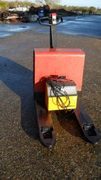 Toyota Power Pallet Truck, working order, with battery charger, 1000 x 680mm lifting legs. Stored near Toft Monks, Beccles.
