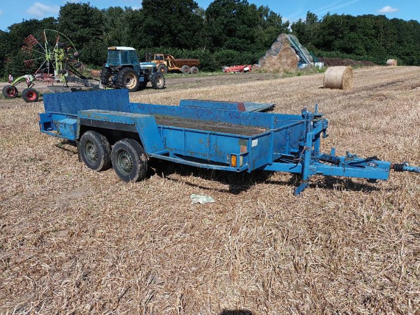 Ex military plant trailer 4.56m x 2m with hand jack and hand winch, plywood flooring needs attention, no VAT