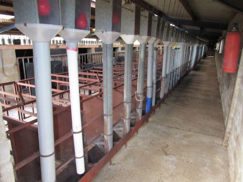 Contents of building comprising 20 concrete block pens with gate fronts, 120 feed stalls, 120 drop feed system and curtains