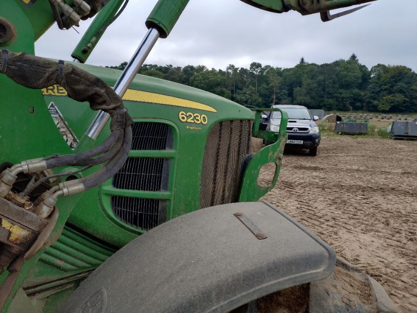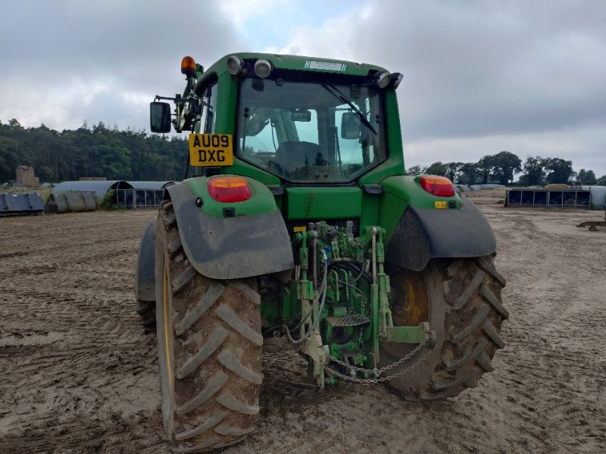 2009 John Deere 6230 Premium four wheel drive tractor, c/w front end loader, Reg AU09 DXG, 16,878 hrs, 460/85 R 38 rear wheels and tyres, 42 /85 R 24 front wheels and tyres